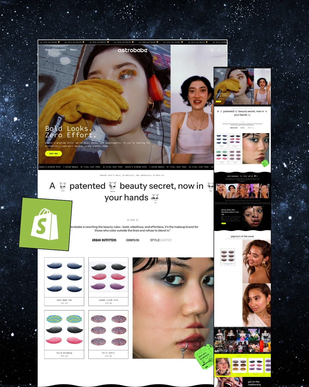 Astrobabe is an unapologetic, maximalist beauty brand making bold, high-impact eyeshadow effortless. Their peel & press shadow tattoos eliminate the need for brushes, blending, or makeup skills—just press and go. While the product itself was innovative, the brand’s digital experience wasn’t fully capturing its energy or converting visitors into customers.